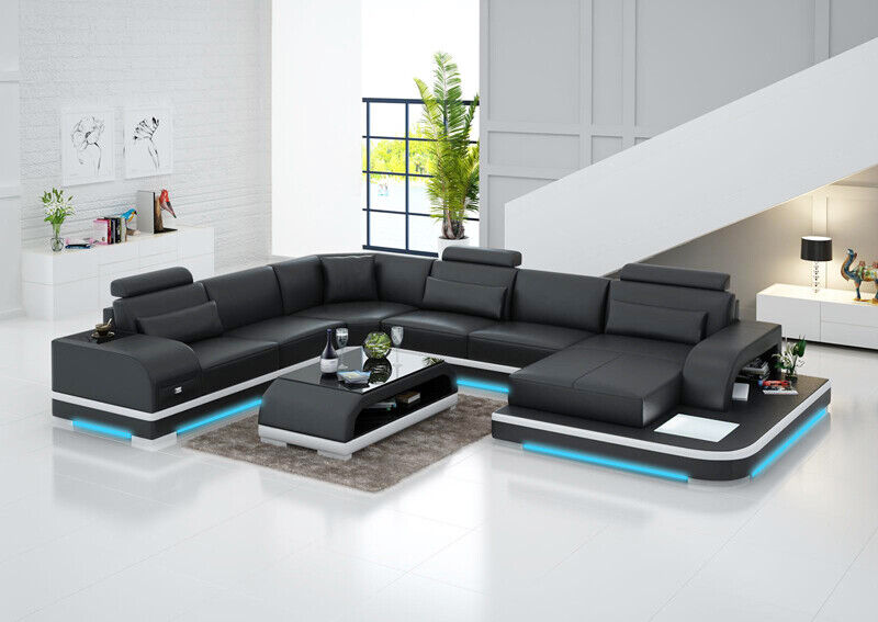 Ledersofa Couch Wohnlandschaft Ecksofa Eck Garnitur Design Modern Sofa +USB Neu