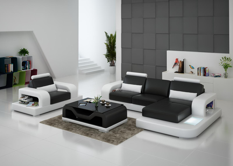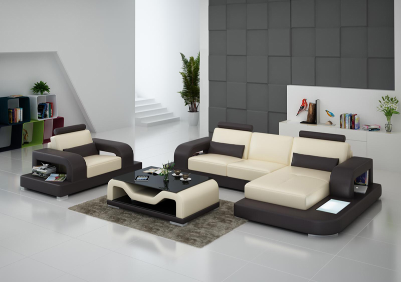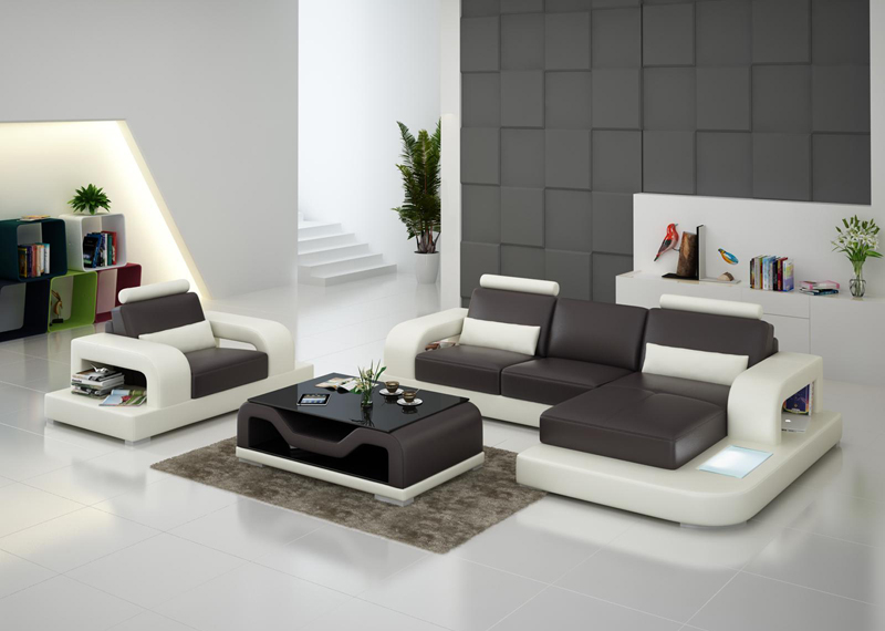 Ledersofa Couch Wohnlandschaft Eck + Sessel Garnitur Design Modern Sofa mit USB