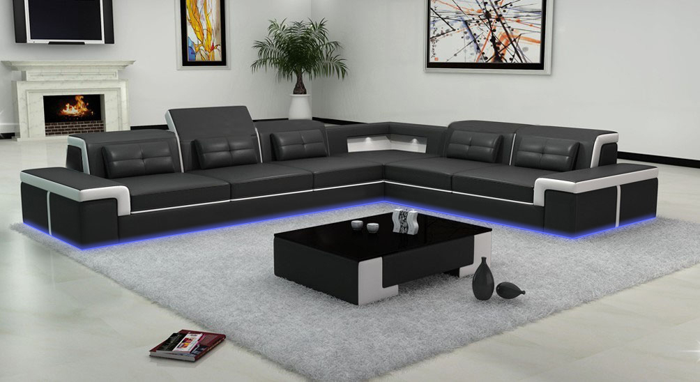 Ledersofa Couch Wohnlandschaft Ecksofa Eck Garnitur Design Modern Sofa B2021
