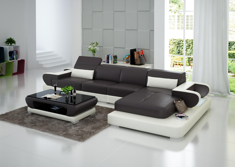 Ledersofa Couch Wohnlandschaft Ecksofa Eck Garnitur Design Modern Sofa G8002C