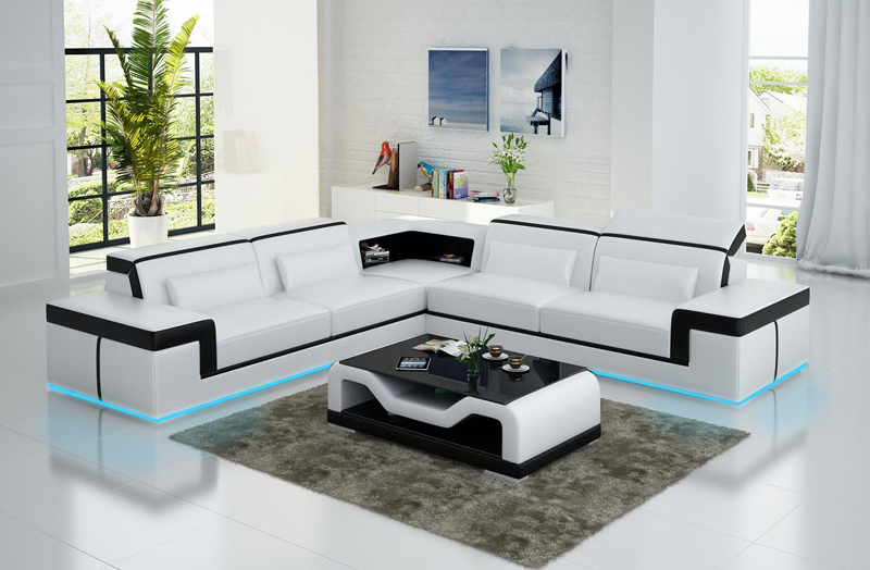 Ledersofa Couch Wohnlandschaft Ecksofa Eck Garnitur Design Modern Sofa G8020B