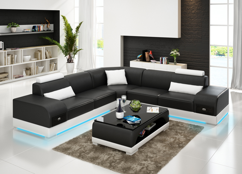 Ledersofa Couch Wohnlandschaft Ecksofa Eck Garnitur Design Modern Sofa USB Neu