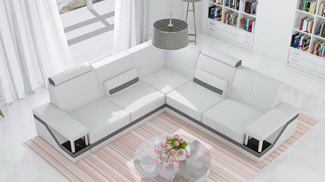 Ledersofa Eckcouch Sofa + USB Poster Eckgarnitur Sofas Stoff Leder Garnitur Neu