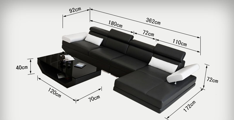Entdecken Sie mit unserem Ledersofa "Wohnlandschaft Ecksofa" eine moderne und stilvolle Ergänzung für Ihr Zuhause! Dieses Ecksofa in L-Form bietet nicht nur ein zeitgemäßes Design, sondern auch höchsten Komfort. Hergestellt aus hochwertigem Premium Lederfaserstoff (70% Leder / 30% Polyester) sorgt dieses Sofa für Behaglichkeit und Eleganz. Mit Maßen von ca. 362 x 172 cm oder 172 x 362 cm, einer Höhe von ca. 72 cm und einer Tiefe von ca. 92 cm bietet das Sofa ausreichend Platz zum Entspannen. Die Sitzhöhe von ca. 42 cm und die Sitztiefe von ca. 60 cm ermöglichen ein angenehmes Sitzerlebnis. Zudem haben Sie die freie Auswahl aus einer Vielzahl von Farben, darunter Zyan, Weinrot, Schwarz und viele mehr. Optional bieten wir verschiedene Stoffgruppen an, darunter Premium Echtleder aus Italien oder Premium Textilstoff. Das Innengestell aus echtem Holz und der Federkern sorgen für Stabilität und Langlebigkeit. Erwecken Sie Ihr Wohnzimmer mit diesem modernen Ledersofa zu neuem Leben und genießen Sie Gemütlichkeit auf höchstem Niveau! Wählen Sie noch heute Ihre Lieblingsfarbe und bestellen Sie Ihr Ecksofa bei XL Möbel.