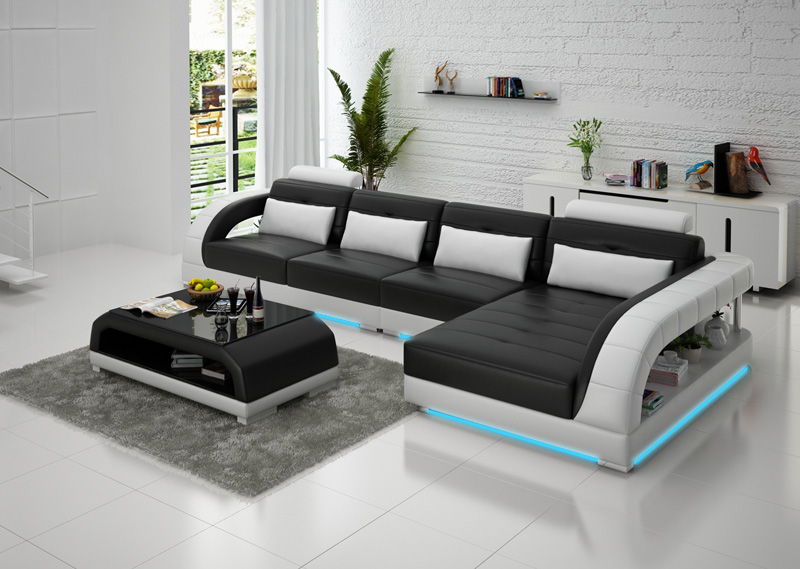 Ledersofa USB Wohnlandschaft Ecksofa Eck Garnitur Design Modern Sofa G8012C Neu