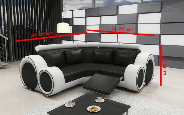 Entspannen Sie in Stil und Komfort mit unserer LEDERSOFA WOHNLANDSCHAFT COUCH DESIGN ECKSOFA BERLIN SOFA GARNITUR mit USB. Dieses elegante Ecksofa in L-Form bietet nicht nur eine großzügige Sitzfläche von ca. 210 x 210 cm, sondern auch eine USB-Klickautomatik mit 3-fach Steckplatz, die bereits inklusive ist. Wählen Sie aus einer Vielzahl von Farben wie Zyan, Weinrot, Schwarz und vielen mehr, um das Sofa nach Ihren Wünschen anzupassen. Das Material besteht aus hochwertigem Premium Lederfaserstoff (70% Leder / 30% Polyester), und Sie haben sogar die Möglichkeit, gegen Aufpreis auf Premium Echtleder oder Premium Textilstoff zu wechseln. Machen Sie Ihr Sofa zu einem echten Highlight, indem Sie es mit zusätzlichen Optionen ausstatten, wie einer elektrischen Relax-Fußstütze, einem Becherhalter mit Kühlsystem oder einem Soundsystem mit USB und Bluetooth. Für eine angenehme Atmosphäre sorgt die optionale Unterbodenbeleuchtung mit Farbwechsel und Fernbedienung. Das Innengestell aus echtem Holz und der Federkern sorgen für Stabilität und Bequemlichkeit. Erfüllen Sie sich Ihren Traum von einem stilvollen und modernen Sofa mit unserem LEDERSOFA WOHNLANDSCHAFT COUCH DESIGN ECKSOFA BERLIN SOFA GARNITUR mit USB.