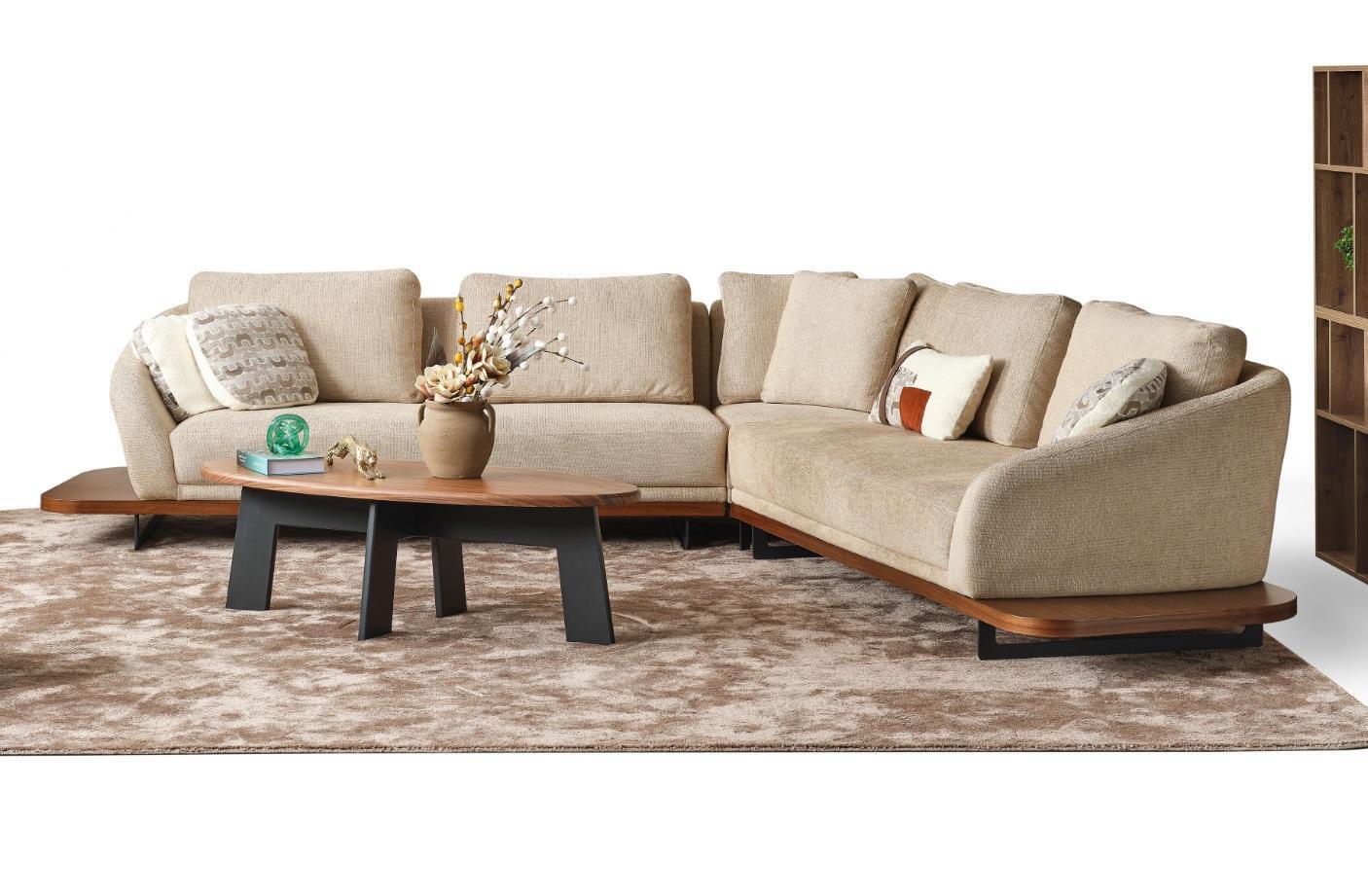 Polstersofa Ecksofa L Form Sofa Wohnlandschaft Sofas Beige Modern