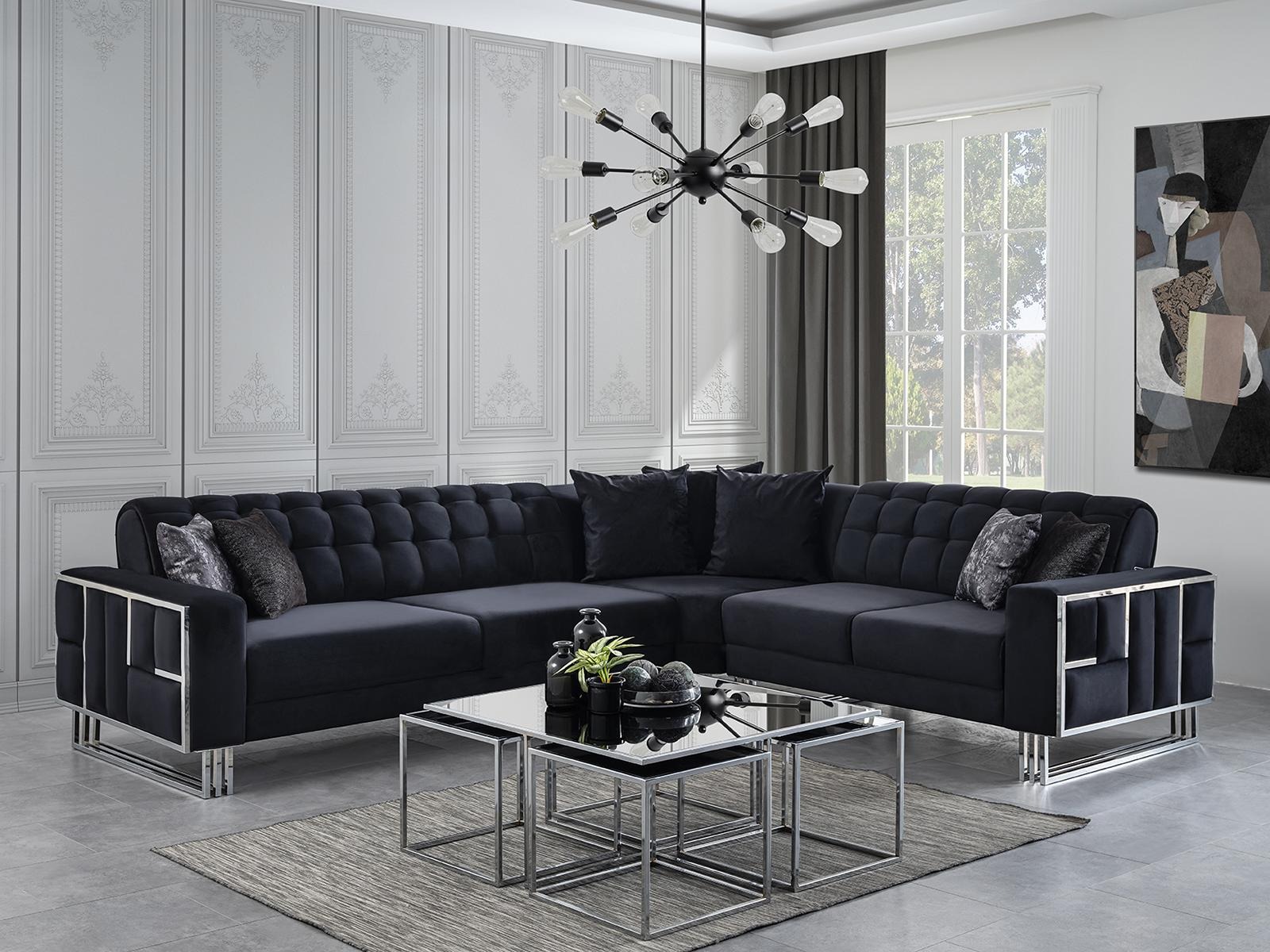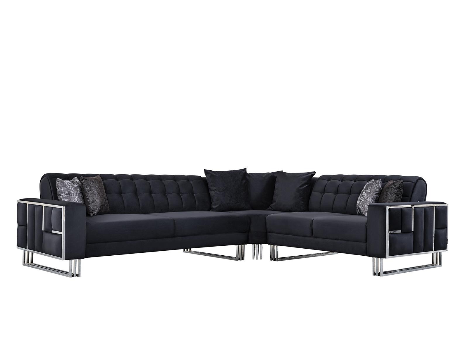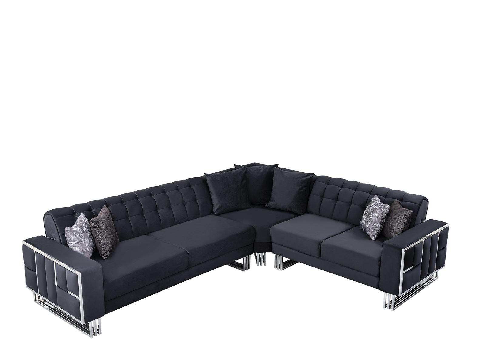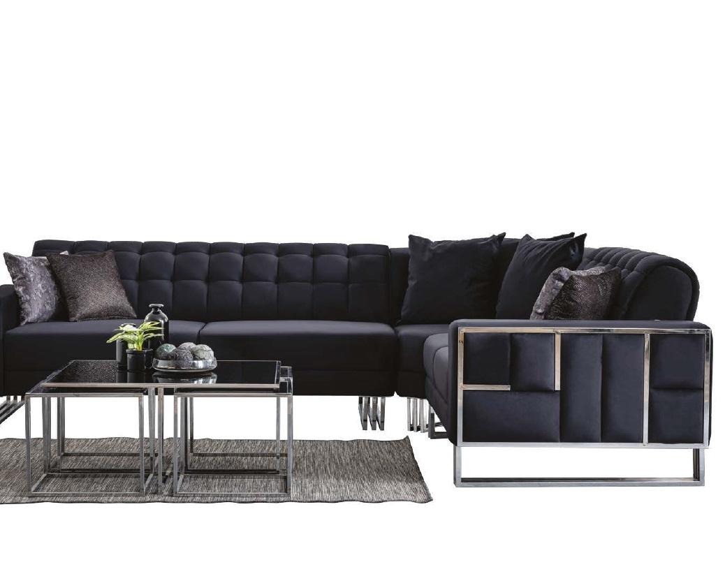 Luxus Ecksofa Textil Couchen Möbel Eckgarnitur Metall Elemente Couch Sofa