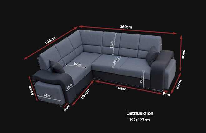 Länge: ca. 190 x 260 x 168 x 104 cm