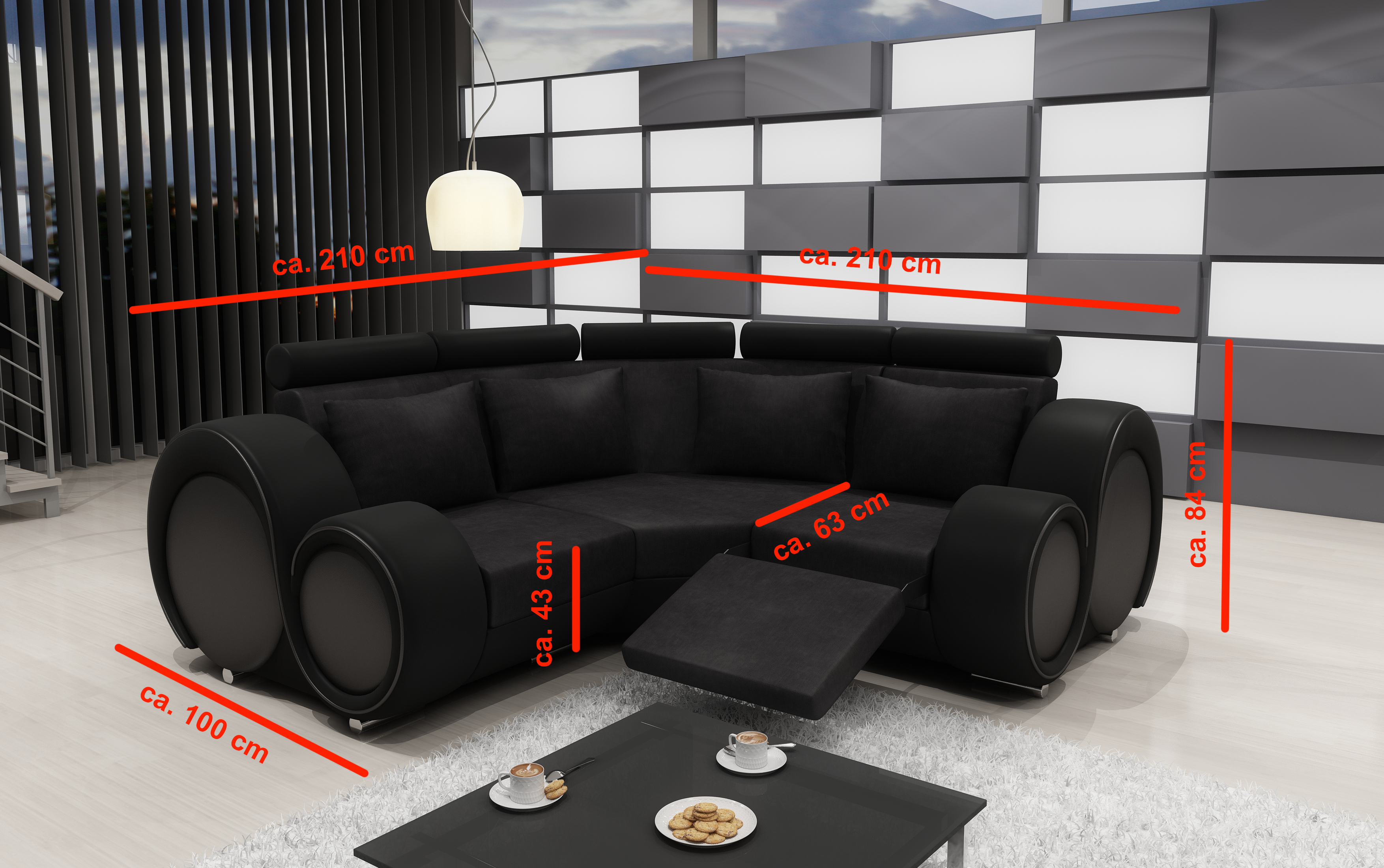 Erwerben Sie jetzt Ihr maßgefertigtes Stoffsofa mit Relaxfunktion und USB-Anschluss von XL Möbel! Diese gemütliche Wohnlandschaft in L-Form mit den Maßen ca. 210 x 210 cm bietet Ihnen höchsten Komfort und Stil in Ihrem Zuhause. Wählen Sie aus einer Vielzahl von Farben wie Zyan, Magenta, Schwarz und vielen mehr! Hergestellt aus Premium Lederfaserstoff (70% Leder / 30% Polyester) können Sie das Sofa optional auch in Premium Echtleder oder Textilstoff erhalten. Personalisieren Sie Ihr Sofa mit zusätzlichen Funktionen wie einer elektrischen Relax-Fußstütze, Becherhalter mit Kühlsystem, eingebautem Soundsystem mit Bluetooth und USB sowie Unterbodenbeleuchtung mit Farbwechsel. Dieses Ecksofa besticht nicht nur durch seine hochwertigen Materialien, sondern auch durch das italienische Rindsleder, das für eine luxuriöse Optik sorgt. Das Innengestell aus echtem Holz und der Federkern garantieren Stabilität und Bequemlichkeit. Wählen Sie XL Möbel für Ihr individuelles Traumsofa!