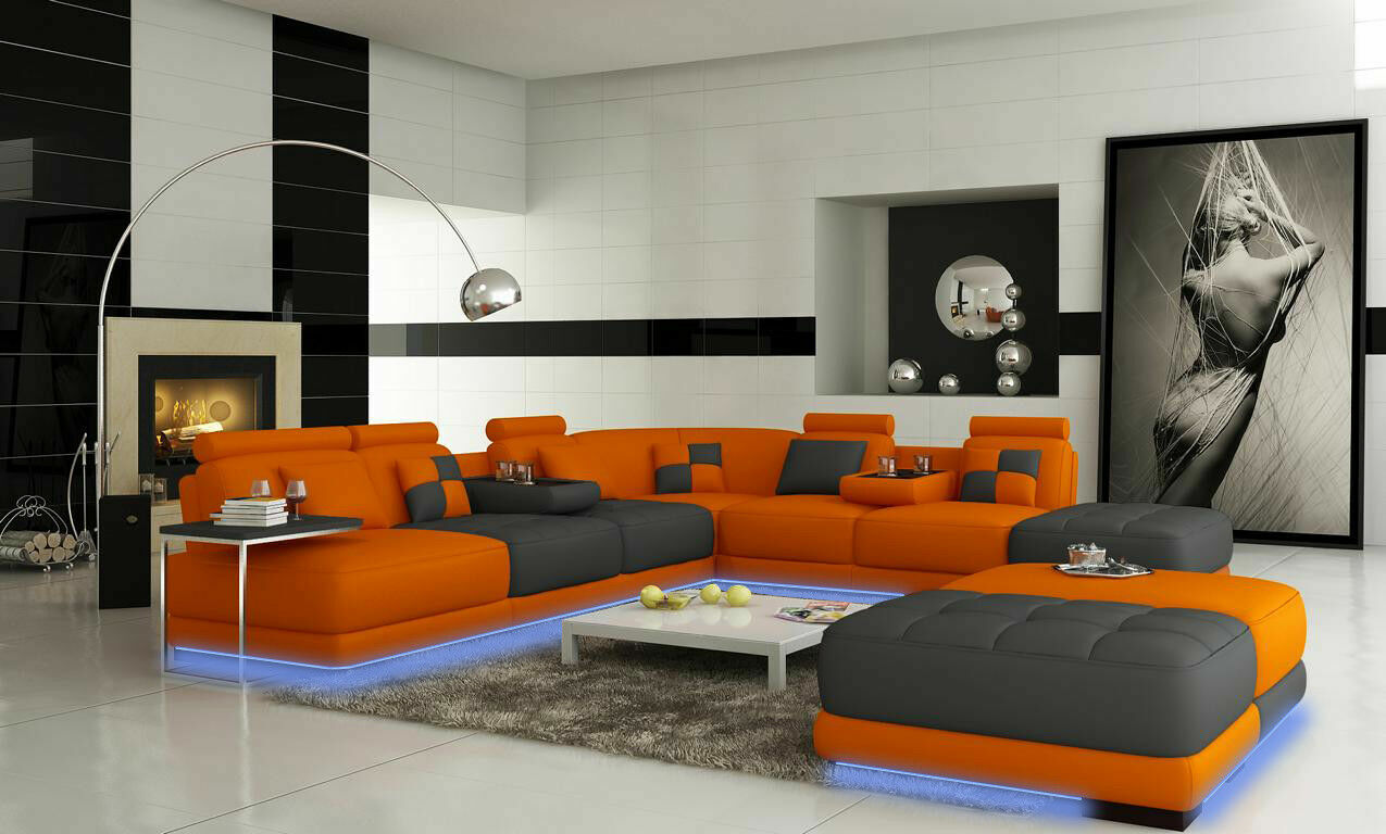 Sofa, Ecksofa, Ledersofa, Wohnzimmermöbel