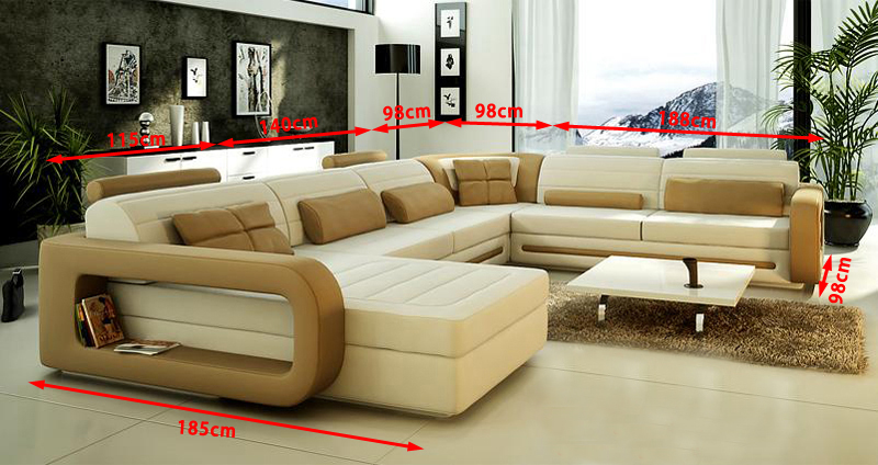 Auf der Suche nach einer Designer Couch in U-Form? Diese moderne Ecksofa Polster Couch aus hochwertigem Lederfaserstoff (70% Leder / 30% Polyester) ist die perfekte Wohnlandschaft für Ihr Zuhause. Mit Maßen von ca. 185 x 353 x 288 cm oder 288 x 353 x 185 cm bietet sie genügend Platz zum Entspannen. Die Sitzhöhe von ca. 42 cm und die Sitztiefe von ca. 58 cm sorgen für maximalen Komfort. Wählen Sie aus einer Vielzahl von Farben wie Zyan, Amethyst, Flieder, Burgunderrot, Schwarz und vielen mehr - so passt Ihre neue Couch perfekt zu Ihrem Wohnstil. Optional können Sie zwischen verschiedenen Materialien wählen, darunter Premium Echtleder aus Italien. Das Innengestell aus echtem Holz und der Federkern garantieren eine lange Lebensdauer und Gemütlichkeit. Gönnen Sie sich Luxus für Ihr Wohnzimmer mit dieser exklusiven Designer Couch!