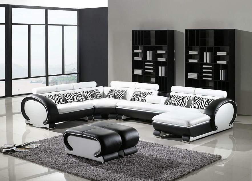 Ecksofa + 2x Hocker Eckgarnituren Leder Couchen Wohnzimmer Sitzmöbel
