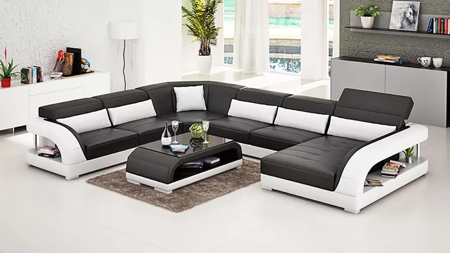 Ecksofa UForm Modernes Sofa Ledersofa Couchen Polster Designer Sofas Tisch 2tlg