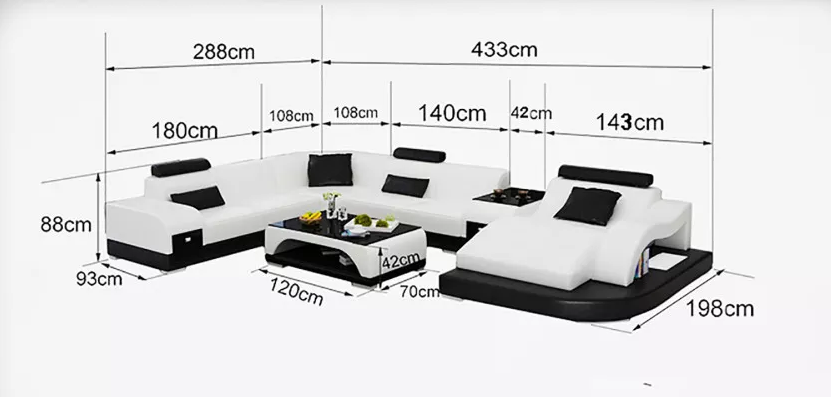 Erhalten Sie jetzt das moderne Ecksofa in U-Form von XL Möbel! Dieses 2-teilige Set, bestehend aus einem geräumigen Ecksofa, einem Sessel und einem Couchtisch, ist die perfekte Ergänzung für Ihr Zuhause. Mit Maßen von 288 x 433 x 198 cm oder 198 x 433 x 288 cm bietet diese Eckcouch viel Platz zum Entspannen. Das Ecksofa ist mit Premium Lederfaserstoff (70% Leder/30% Polyester) bezogen und in einer eleganten Farbe wie auf dem Foto gezeigt erhältlich. Alternativ können Sie aus einer Vielzahl von Farben wählen, darunter Zyan, Fuchsia, Schwarz und viele mehr. Die Sitzhöhe beträgt 42 cm und die Tiefe 58 cm, was eine gemütliche Atmosphäre garantiert. Der Couchtisch unterstützt das moderne Design mit Maßen von 120 x 70 x 42 cm. Der Innenrahmen aus Naturholz und die innere Feder sorgen für Stabilität und Komfort. Entdecken Sie die verschiedenen Optionen für die Bezugsstoffe, von Premium-Ledergewebe bis hin zu italienischem Rindsleder. Bringen Sie mit diesem wunderschönen Ecksofa von XL Möbel Luxus und Komfort in Ihr Wohnzimmer!