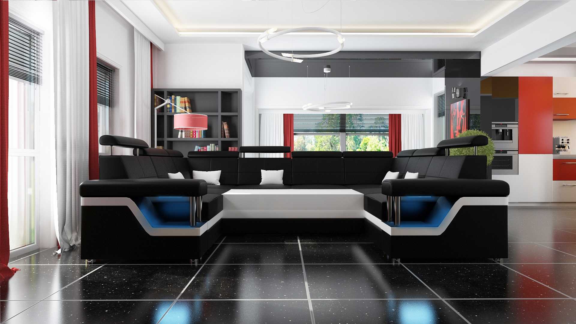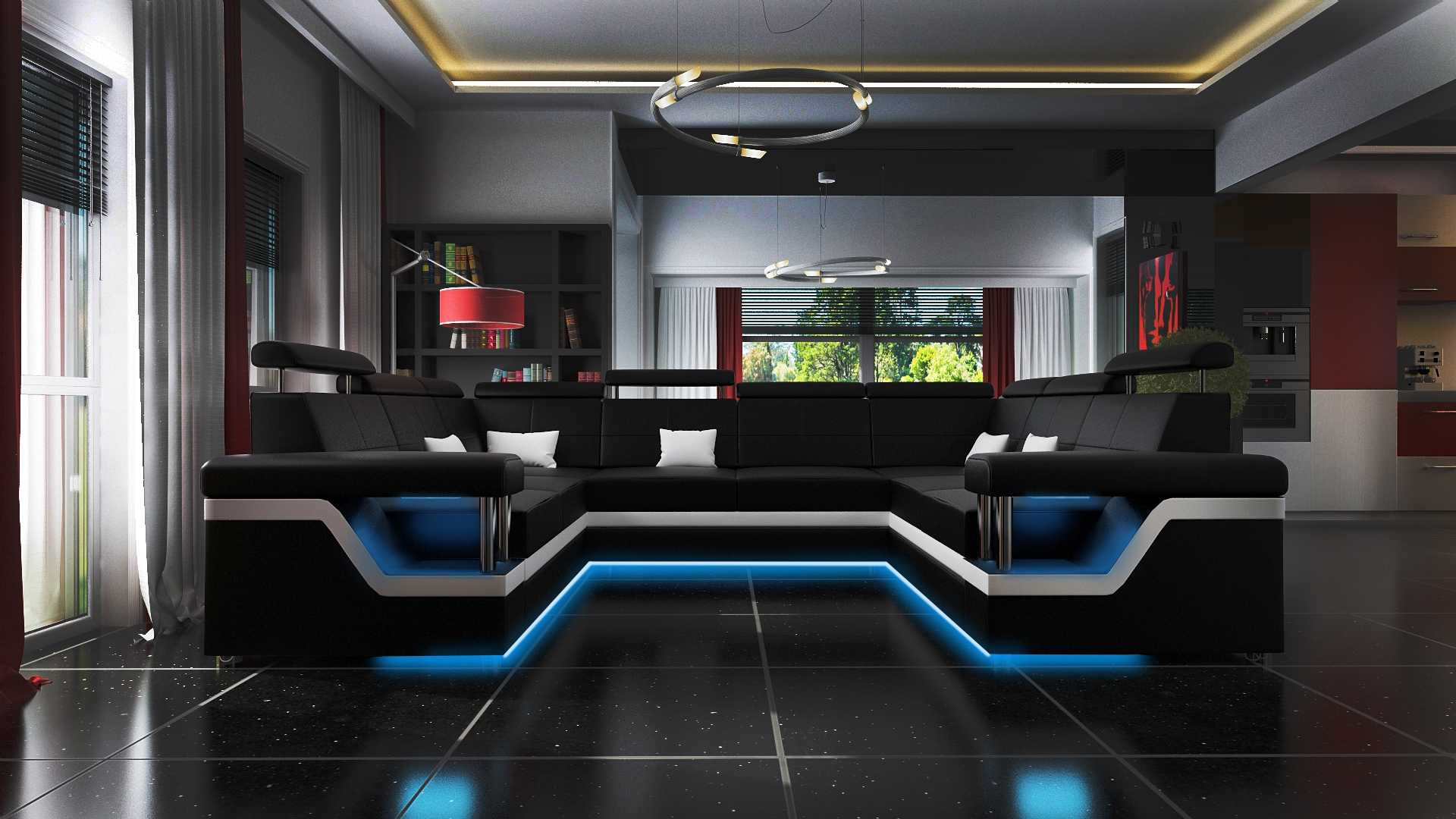 Ecksofa Wohnlandschaft Sofa Couch U Form Polster Couchen Leder Design Beleuchtet