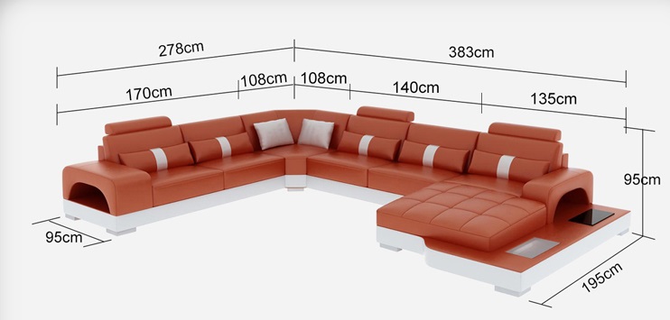 Entdecken Sie das Ledersofa Couch Wohnlandschaft Ecksofa Eck Garnitur Design Modern Sofa mit USB! Dieses hochwertige Möbelstück bietet nicht nur Komfort und Stil, sondern auch praktische Funktionen wie den USB-Klickautomatik (3xfach Steckplatz) - INKLUSIVE! Mit Maßen von ca. 195 x 383 x 278 cm oder ca. 278 x 383 x 195 cm und einer Höhe von ca. 95 cm passt dieses Ecksofa perfekt in Ihr Wohnzimmer. Die Sitzhöhe beträgt ca. 42 cm und die Tiefe ca. 95 cm, mit einer Sitztiefe von ca. 58 cm. Sie haben die freie Farbwahl aus einer Vielzahl von Optionen, die Sie unter dem Reiter "Farben" finden können. Das Material besteht aus Premium Lederfaserstoff (70% Leder / 30% Polyester), wobei Sie optional aus verschiedenen Stoffgruppen wählen können. Für zusätzlichen Komfort und Luxus bieten wir im Shop verschiedene Tuning-Optionen an, darunter eine elektrische Relax-Fußstütze, Becherhalter mit Kühlsystem, Soundsystem mit USB und Bluetooth, sowie Unterbodenbeleuchtung mit Fernbedienung. Das Ledersofa ist mit Rindsleder aus Italien gefertigt, mit einem Innengestell aus echtem Holz und Federkern für optimale Unterstützung und Langlebigkeit. Bringen Sie Stil und Funktionalität in Ihr Zuhause mit dieser modernen Wohnlandschaft!