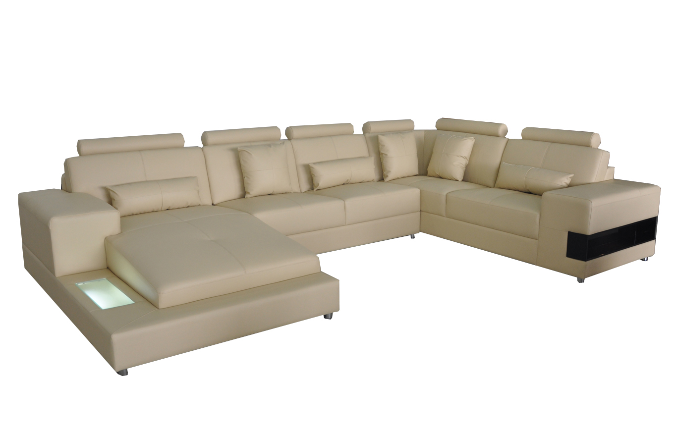 Ledersofa Couch Wohnlandschaft Eck Garnitur Design Modern Sofa U-Form mit USB