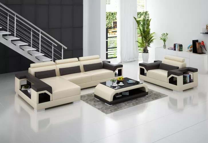 Ecksofa LForm Sessel Couchtisch Modernes Sofa Ledersofa Ecksofa Polster 4tlg Set