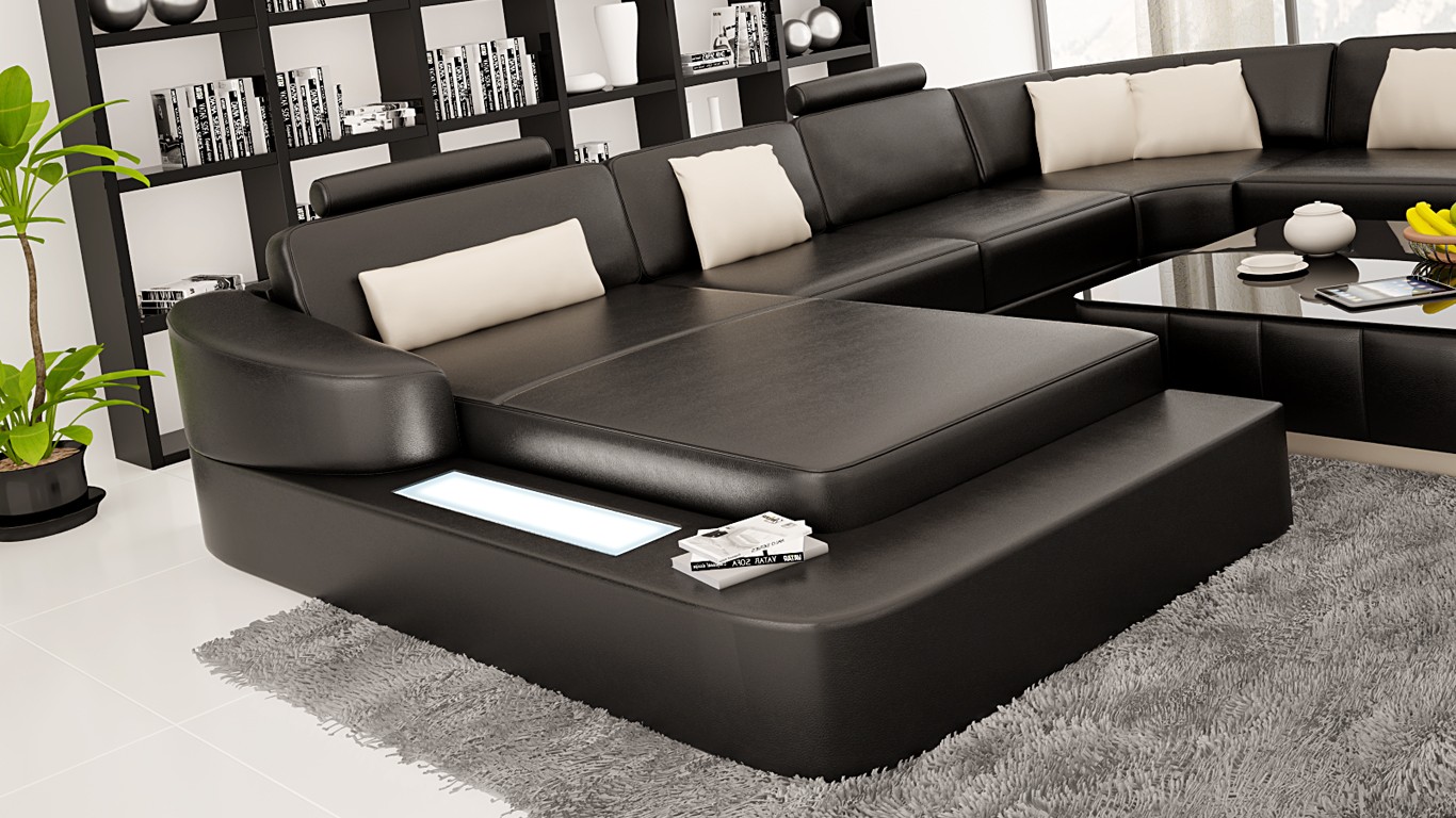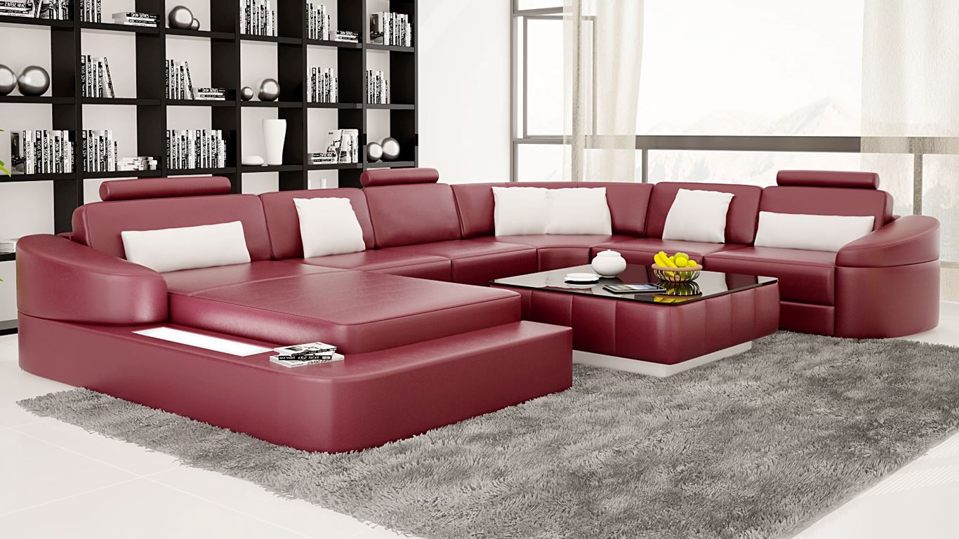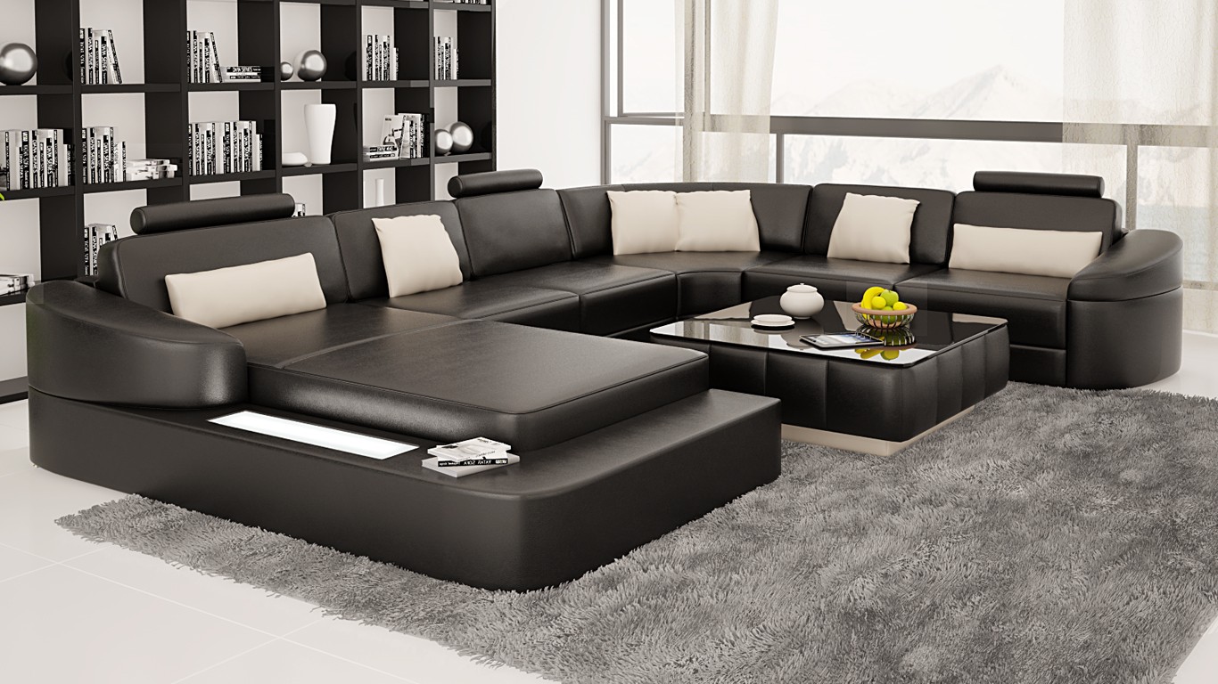 Leder Modern Couch Wohnlandschaft Ledersofa Sofagarnitur Möbel Sofa U-Form Neu