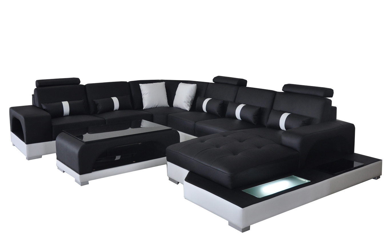 Leder Sofa Moderne Couch Polster Design Wohnlandschaft + Tisch Eck Couchen Sitz