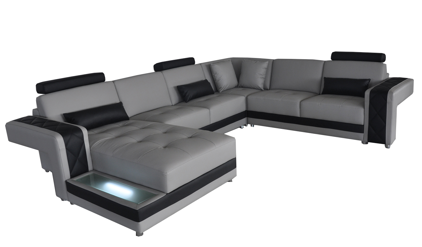Ledersofa Couch Wohnlandschaft Eck Garnitur Design Modern Sofa U-Form LED USB