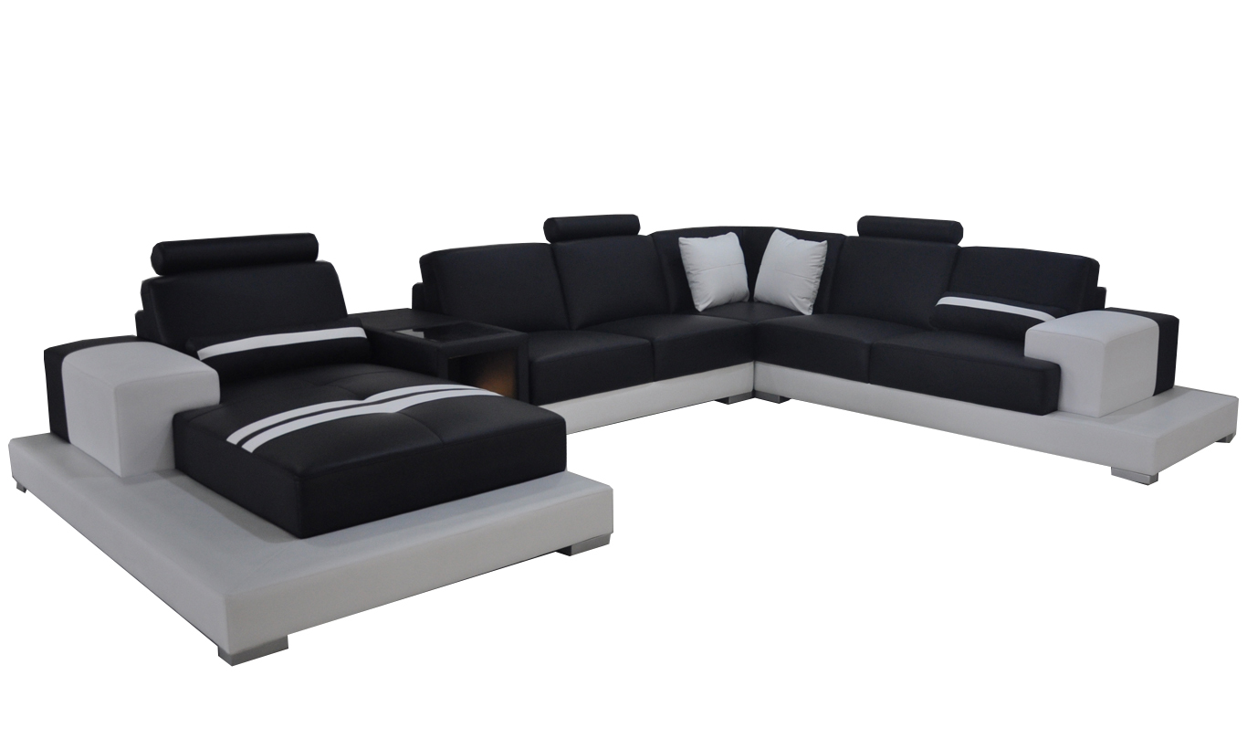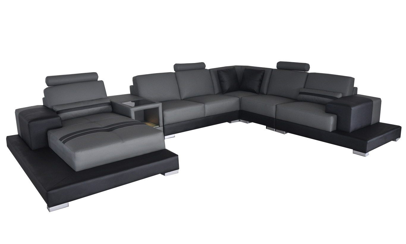 Ledersofa, Couch, Wohnlandschaft, U-Form, Design Modern, USB