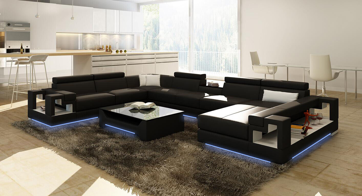 Ledersofa Couch Wohnlandschaft Ecksofa Eck Garnitur Design Modern Sofa 6138