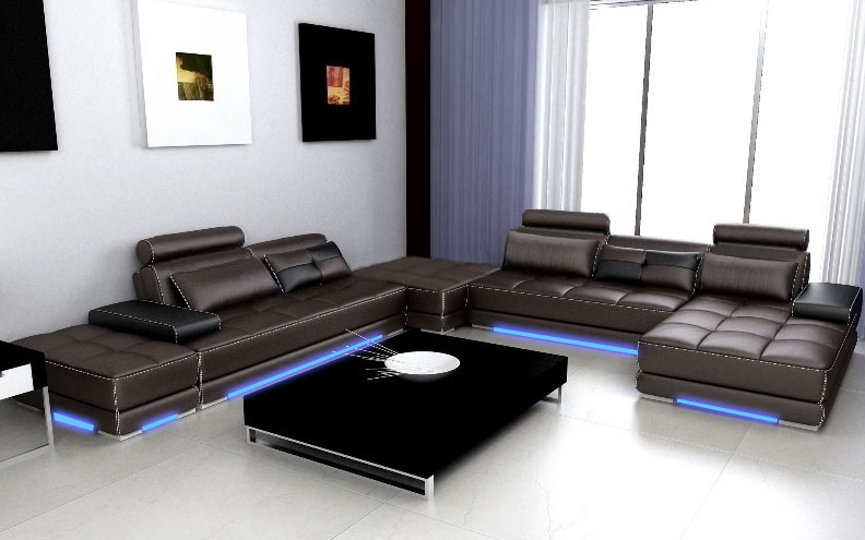 Ledersofa Couch Wohnlandschaft Ecksofa Eck Garnitur Design Modern Sofa + USB Neu