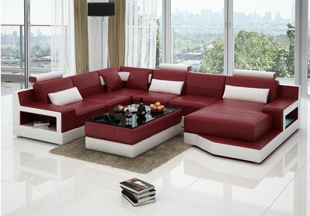 Ledersofa Ecksofa + USB Garnitur Wohnlandschaft Polster Bettfunktion Neu Design