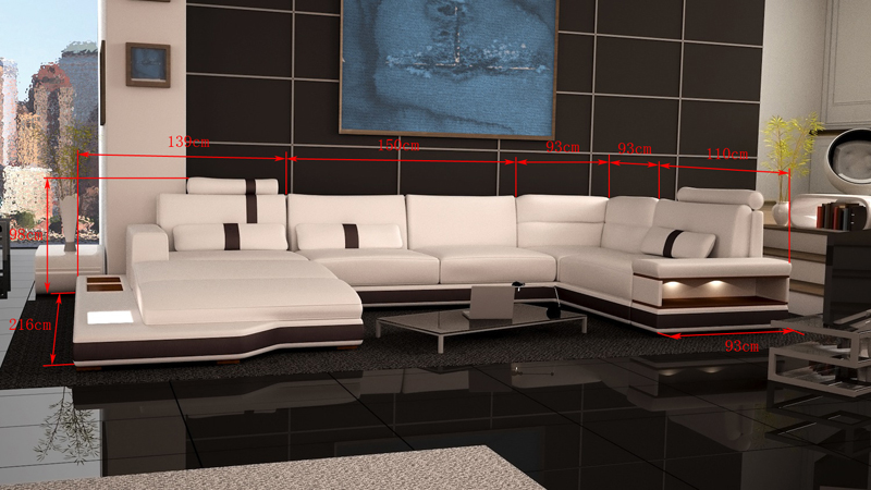 Entdecken Sie die moderne U-Form Sofa Eckgarnitur von XL Möbel für ein stilvolles Zuhause! Dieses Designerstück besticht durch seine großzügigen Maße von ca. 216 x 382 x 203 cm oder ca. 203 x 382 x 216 cm und einer Höhe von ca. 98 cm. Genießen Sie den hohen Sitzkomfort mit einer Sitzhöhe von ca. 42 cm und einer angenehmen Sitztiefe von ca. 56 cm. Wählen Sie Ihre Lieblingsfarbe aus einem breiten Spektrum von Farben wie Zyan, Amethyst, Weinrot, Schwarz und vielen mehr. Das Sofa ist mit Premium Lederfaserstoff (70% Leder / 30% Polyester) bezogen, und Sie haben die Möglichkeit, gegen Aufpreis zwischen Premium Echtleder oder Textilstoff zu wählen. Das hochwertige italienische Rindsleder und das Innengestell aus echtem Holz sorgen für Robustheit und Langlebigkeit. Mit Federkernpolsterung bietet dieses Sofa nicht nur ein modernes Design, sondern auch höchsten Sitzkomfort. Erhöhen Sie den Luxus in Ihrem Wohnzimmer mit dieser eleganten Eckgarnitur und holen Sie sich ein Stück Italien nach Hause!