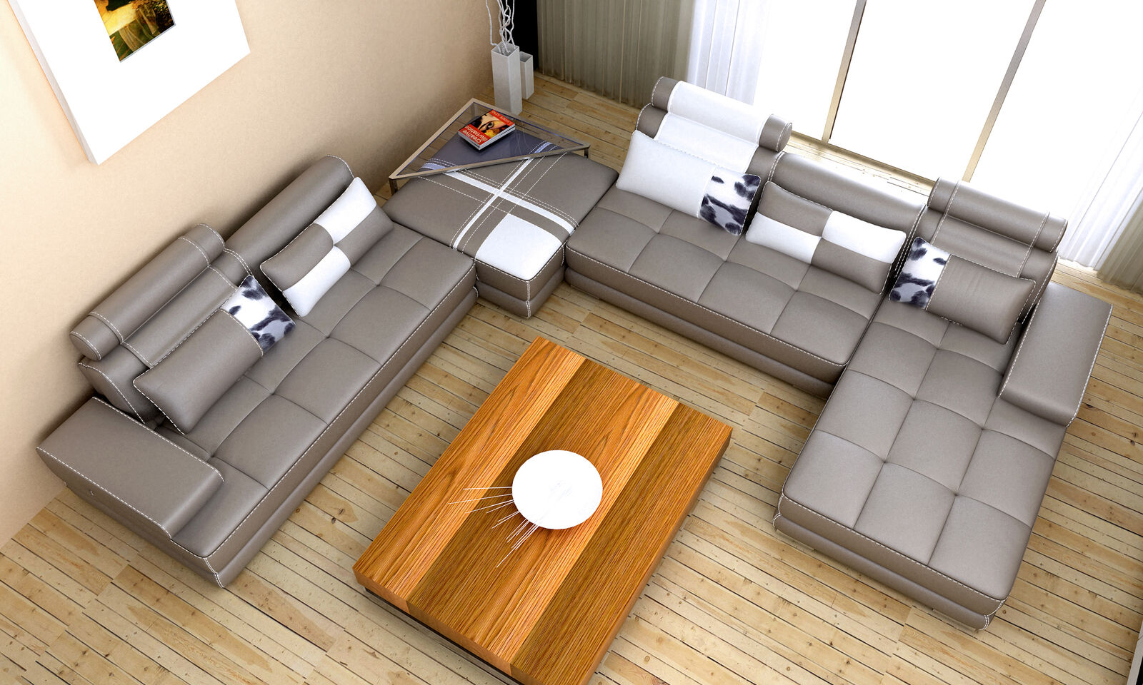 Moderne Design Polster Wohnlandschaft Ledersofa Sofa Couch Sitz