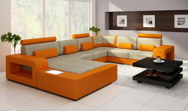 Wohnlandschaft, Sofa mit USB, Sofagarnitur, Stoff, Textil Leder, Beleuchtung