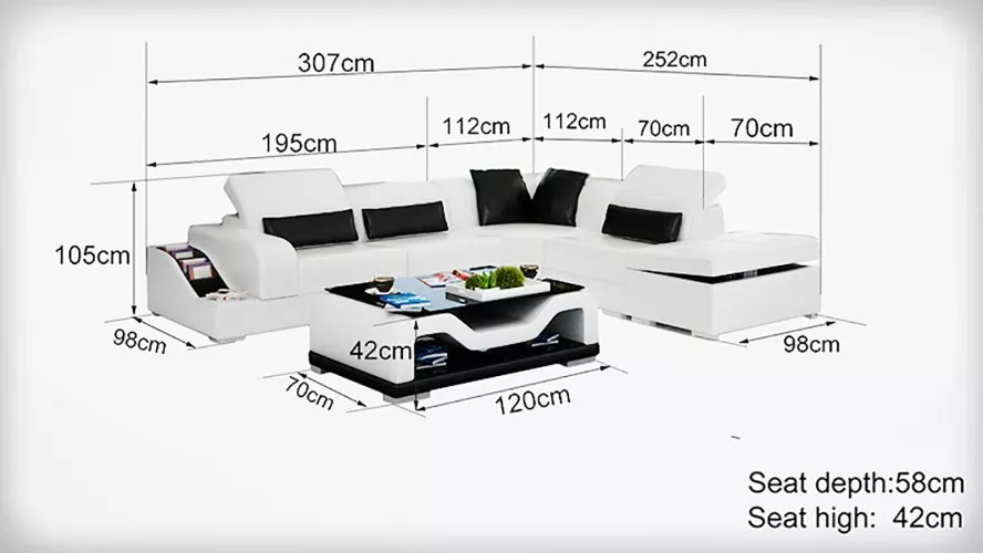 Entspannen und genießen Sie den Komfort eines Premium-Ledersofas mit der Garnitur Eckssofa von XL Möbel! Dieses elegante Ecksofa ist in L-Form gestaltet und bietet Ihnen die Freiheit, zwischen den Maßen 307 x 252 cm oder 252 x 307 cm zu wählen. Mit einer Höhe von ca. 105 cm, einer Tiefe von ca. 98 cm, einer Sitzhöhe von ca. 42 cm und einer Sitztiefe von ca. 58 cm, ist dieses Ledersofa sowohl stilvoll als auch bequem. Sie haben die Möglichkeit, aus einer Vielzahl von Farben wie Zyan, Flieder, Weinrot, Schwarz und vielen mehr zu wählen. Das Garnitur Eckgarnitur Sofa besteht aus Premium Lederfaserstoff (70% Leder / 30% Polyester), und bietet optional gegen Aufpreis verschiedene Materialoptionen wie Premium Echtleder oder Premium Textilstoff. Genießen Sie Luxus mit italienischem Rindsleder und einem Innengestell aus echtem Holz. Verleihen Sie Ihrem Wohnzimmer mit dieser Wohnlandschaft Eleganz und Komfort zugleich. Warten Sie nicht länger und bestellen Sie noch heute Ihre Traumcouch!