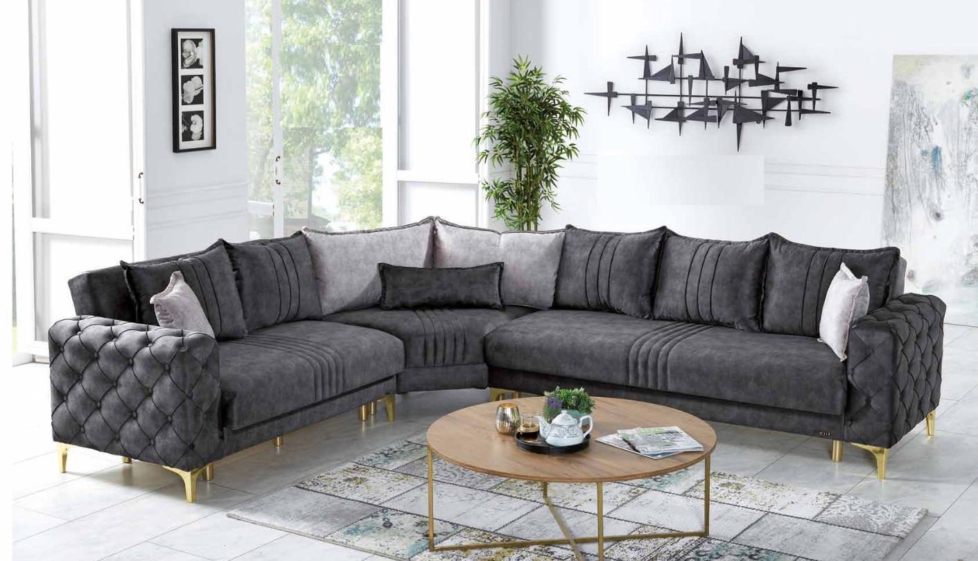 Grau Wohnzimmer Ecksofa L-Form Modern Chesterfield Neu Luxus Sofa