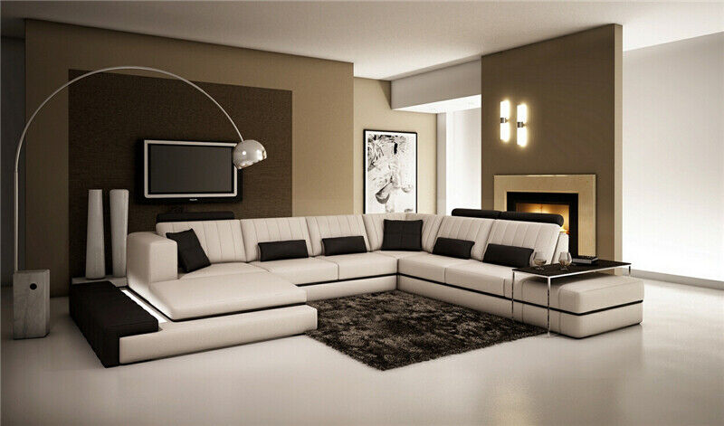Leder Modern Couch Wohnlandschaft Ledersofa Sofagarnitur Sofa U-Form
