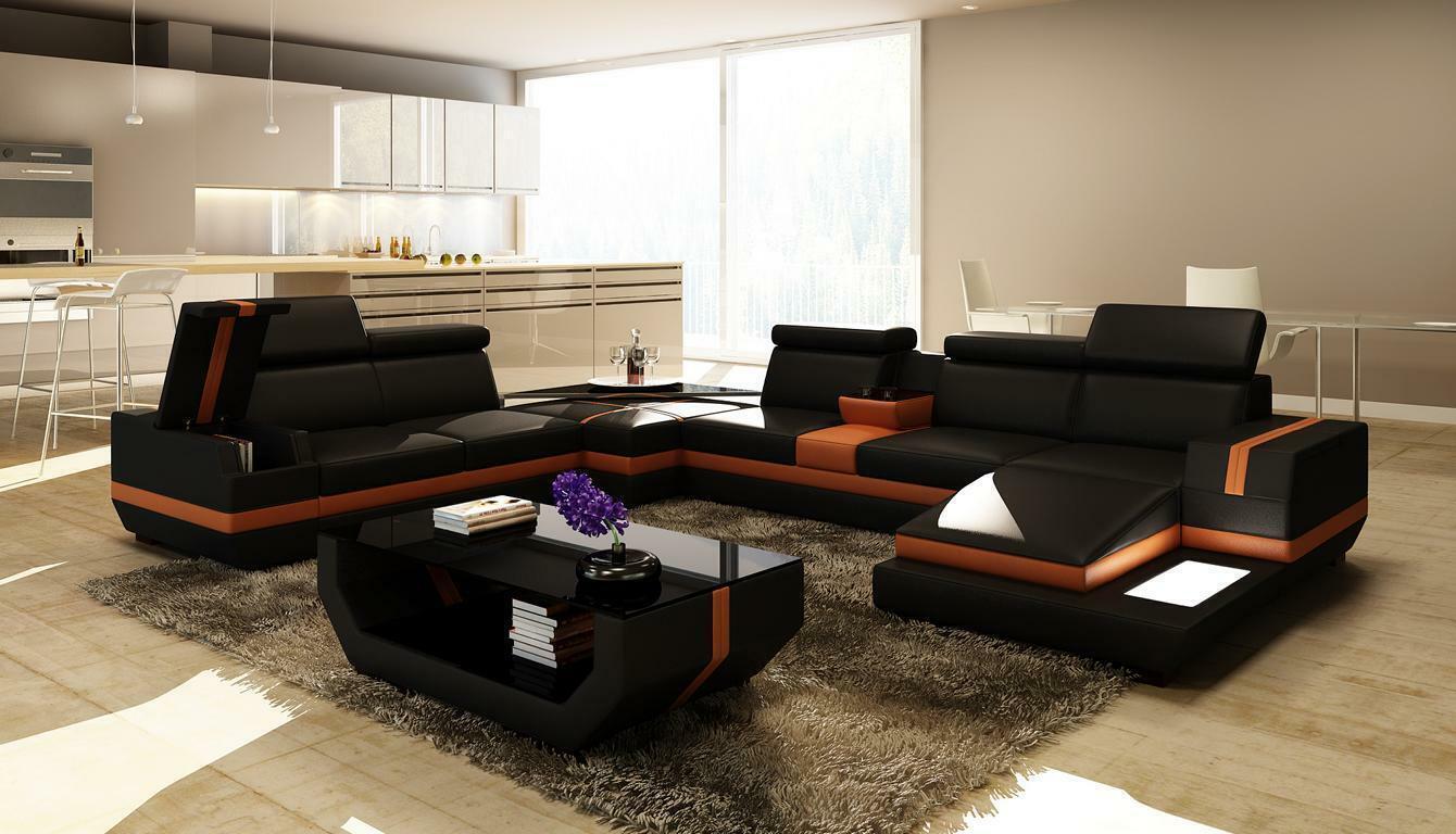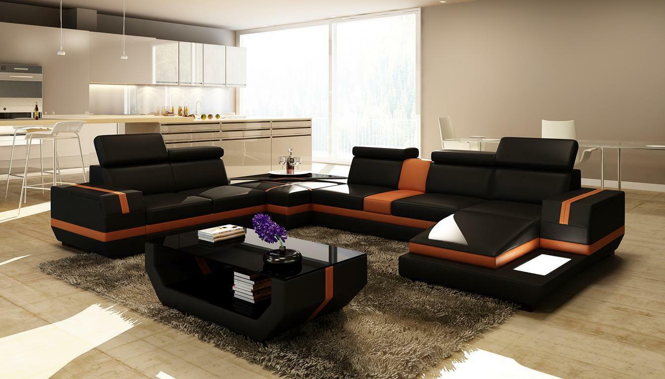 Ledersofa Couch Wohnlandschaft U-Form Design Modern Sofa Eck Sofas Design 5099