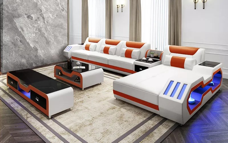 Ledersofa Led Beleuchtete Designer Eckcouch Polster Eckgarnitur Sofa 2tlg