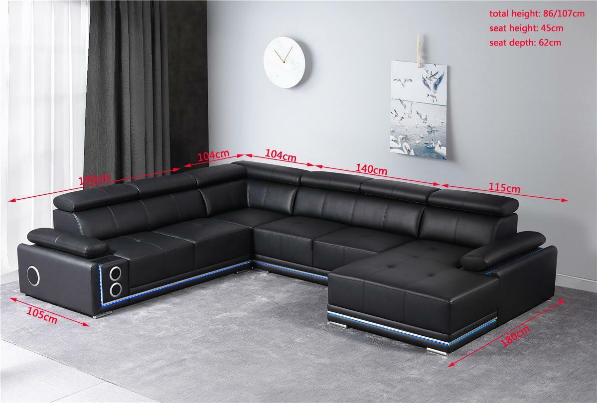 Moderne Ecksofa Wohnlandschaft Couch Eckgarnitur Led Linie Beleuchtet