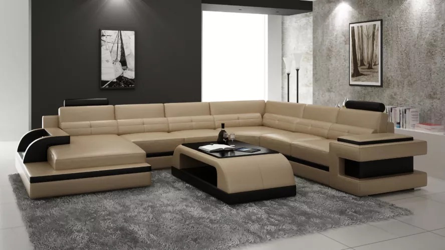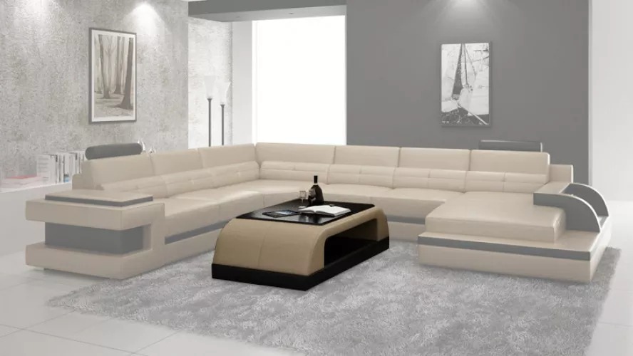 Kaufen Sie ein Ecksofa in U-Form, günstig, mit Lederpolsterung, Sofa für das Wohnzimmer