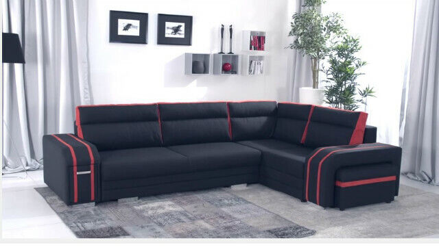 Entdecken Sie das Polstersofa Loungesofa Couch Sitzgruppe für Ihr Wohnzimmer! Mit XL Möbel haben Sie die Möglichkeit, Ihre Eckcouch in L-Form individuell anzupassen. Wählen Sie aus einer Vielzahl von Farben wie Zyan, Burgunderrot, Schwarz und vielen mehr. Die Maße von ca. 305 x 205 cm oder 205 x 305 cm bieten genügend Platz für gemütliche Abende. Das Sofa ist ca. 90 cm hoch und tief, mit einer angenehmen Sitztiefe von ca. 60 cm. Sie können zwischen verschiedenen Materialien wählen, darunter Stoff oder Premium Kunstleder in verschiedenen Gruppen. Die integrierte Bettfunktion mit einer Liegefläche von ca. 250 x 145 cm und Bettkasten sorgen für zusätzlichen Komfort. Der Korpus besteht aus echtem Holz und einem Federkern, um Ihnen die nötige Stabilität zu bieten. Bei Bedarf können Sie die Unterboden-LED-Beleuchtung gegen Aufpreis hinzufügen. Das Polstersofa kommt inklusive Hocker und kann sogar spiegelverkehrt aufgestellt werden. Machen Sie Ihr Wohnzimmer zu einem Ort der Entspannung mit dieser stilvollen Sitzgruppe!