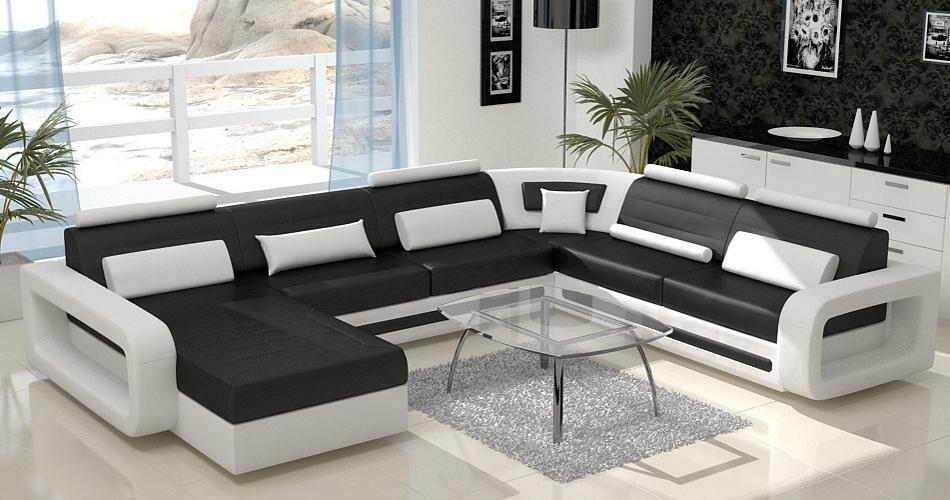 U Form Sofa Couch Polster Ecksofa Garnitur Wohnlandschaft Leder Design