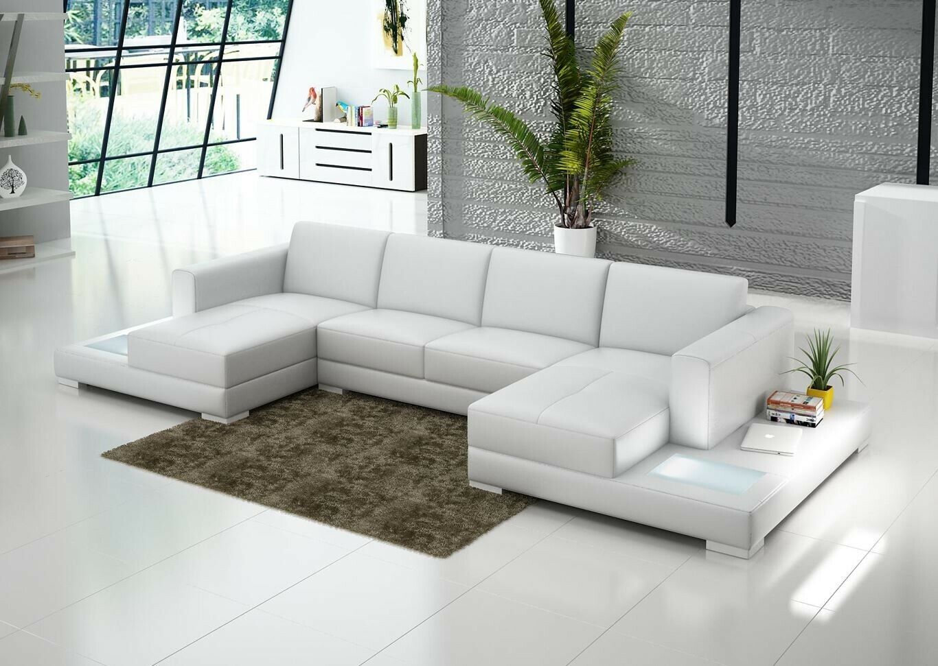U Form Sofa Couch Polster Garnitur Wohnlandschaft Design Ecksofa Leder