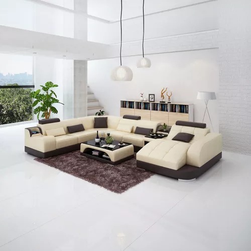 Kaufen Sie ein Ecksofa in U-Form, günstig, mit Lederpolsterung, Sofa für das Wohnzimmer