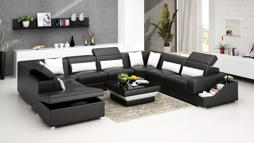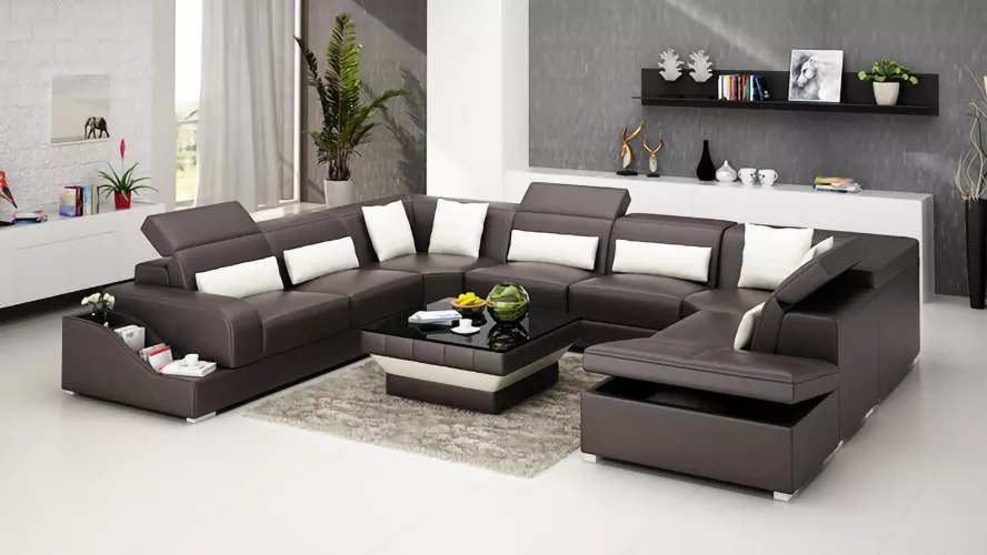 Kaufen Sie ein Ecksofa in U-Form, günstig, mit Lederpolsterung, Sofa für das Wohnzimmer