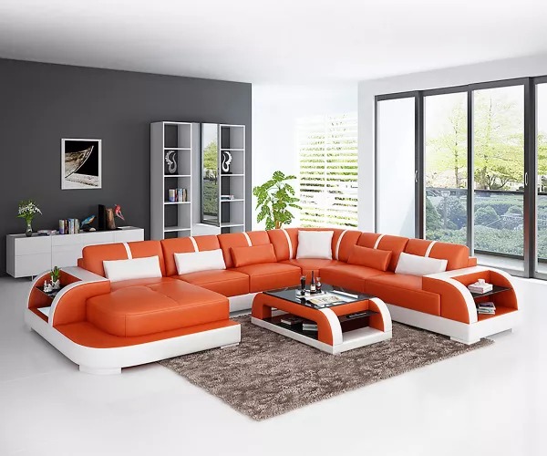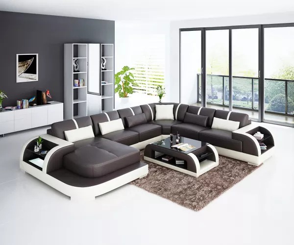 Kaufen Sie ein Ecksofa in U-Form, günstig, mit Lederpolsterung, Sofa für das Wohnzimmer