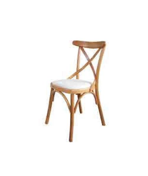 Ein Holzstuhl mit einem weichen Sitz und einem runden Rücken für Ihr Esszimmer