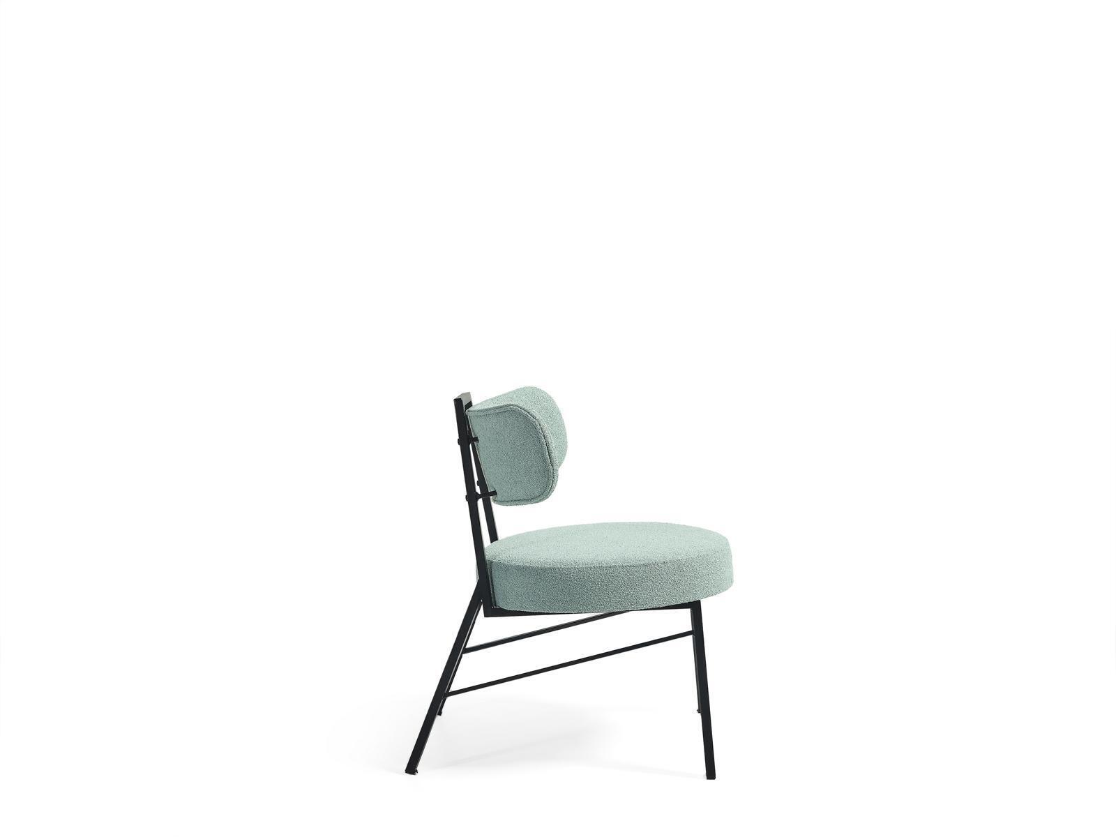 Eleganter grauer Esszimmerstuhl mit rundem gepolstertem Sitz