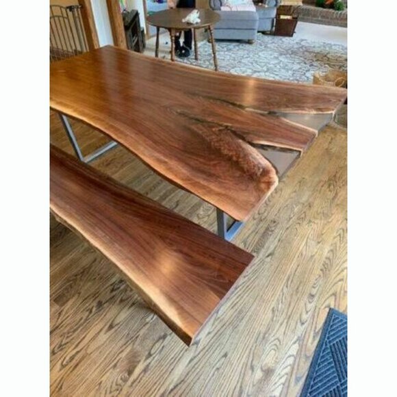 Entdecken Sie unseren Design Tisch Bank aus massivem Echtholz für Ihr Esszimmer oder Ihre Küche! Mit Maßen von ca. 220 * 80 * 75 cm für den Esstisch und ca. 220 * 35 * 47 cm für die Bank, bietet dieses Set nicht nur genügend Platz zum Essen, sondern auch einen modernen Look für Ihr Zuhause. Hergestellt gemäß Abbildung, jedoch kann es aufgrund der natürlichen Eigenschaften des Holzes zu optischen Unterschieden kommen. Kein Problem - wir bieten verschiedene Größen und Ausführungen an, und als Kunde haben Sie die Möglichkeit, Größe, Farbe und Füße der Tische zu ändern. Wir sind sogar bereit, kundenspezifische Anfertigungen anzubieten! Das Set besteht aus massivem Nussbaumholz und Epoxidharz, wodurch es nicht nur robust, sondern auch stilvoll ist. Wählen Sie aus einer Vielzahl von Farben oder kontaktieren Sie uns für spezielle Farbwünsche. Lassen Sie uns wissen, wie wir Ihren Tisch personalisieren können, sobald Sie den Kauf getätigt haben. Bringen Sie mit unserem Design Tisch Bank aus Massivholz ein Stück Natur und Eleganz in Ihr Zuhause!