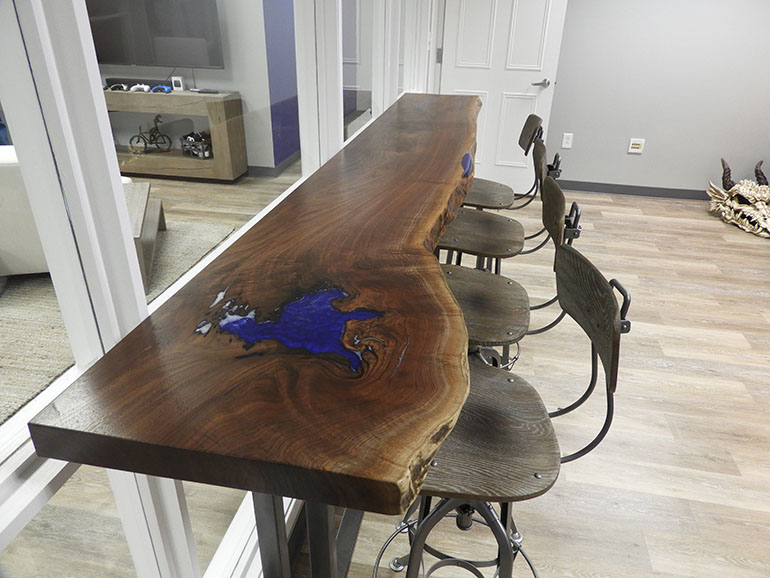 Epoxid Tresen Bartisch echtes holz massive möbel wasserfall epoxy tisch 240x70